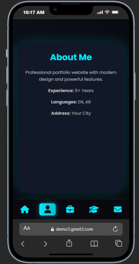 Gmet3 V3 helps you stand out with a strong visual identity and a modern digital look. this is how it looks in mobile :